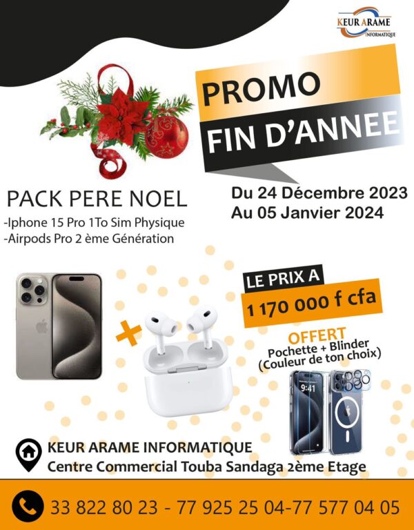 iPhone 15 PRO – 1 To – Sim Physique + Airpod PRO 2eme Gen